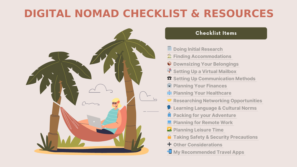 You'll get a 13-page checklist PDF (with resources) to help you plan your digital nomadic adventure.